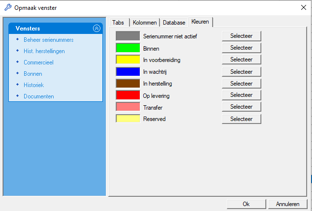 Een serienummer identificatie gebeurt nog een niveau lager. Zo u een aantal identieke stuks ter beschikking heeft staan, kan elk stuk apart nog een eigen serienummer dragen.